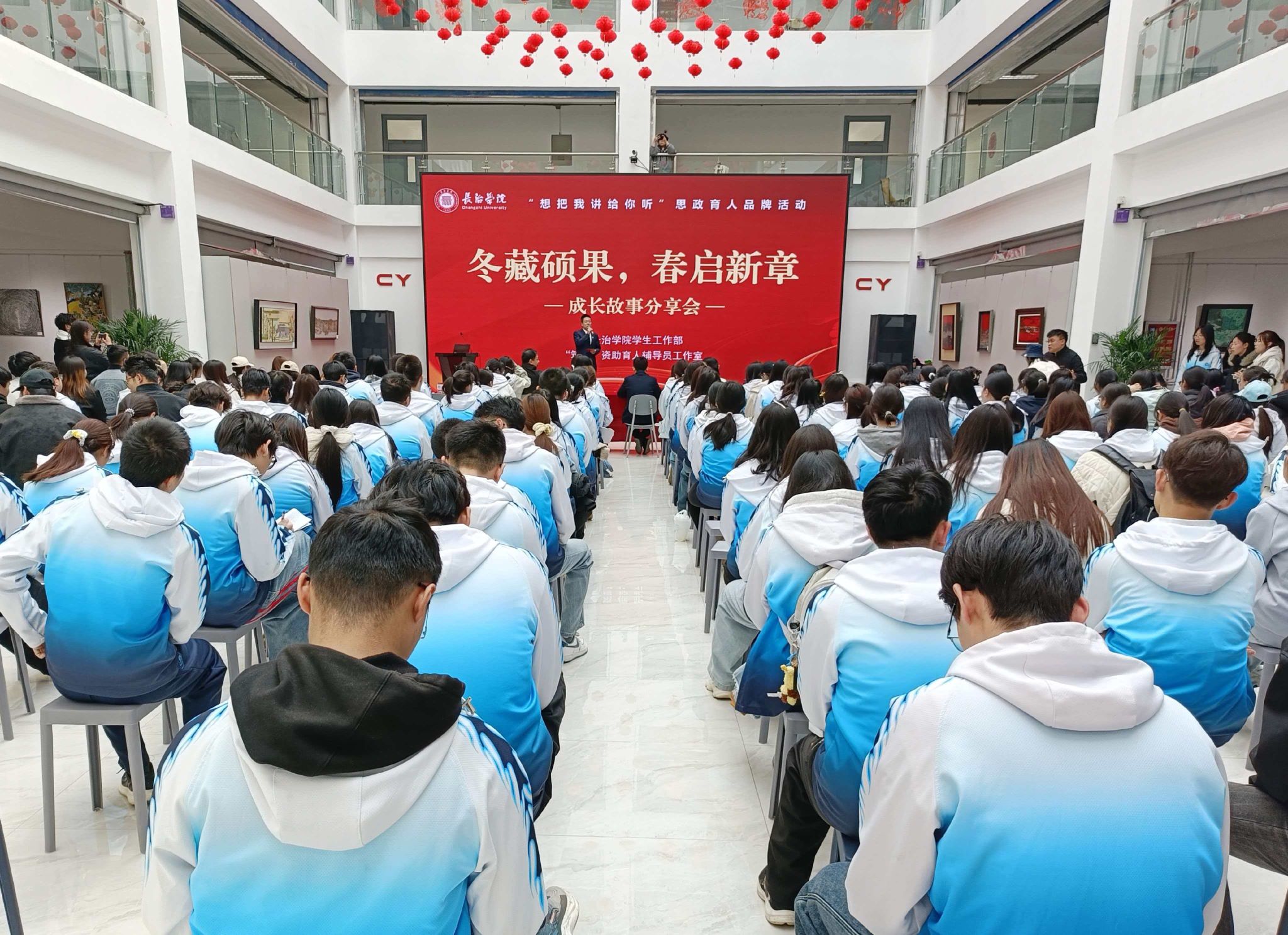 3月17日下午,由我校学生工作部主办、“筑砺”资助育人辅导员工作室承办的“想把我讲给你听”思政育人品牌活动第四期——“冬藏硕果 春启新章”成长故事分享会在南校美术楼学术报告厅成功举办。学生工作部部长韩峰出席活动并作总结讲话,各院系师生代表200余人共同聆听了这场关于寒假成长与新学期启航的青春对话。活动由体育系专职辅导员李一波主持。