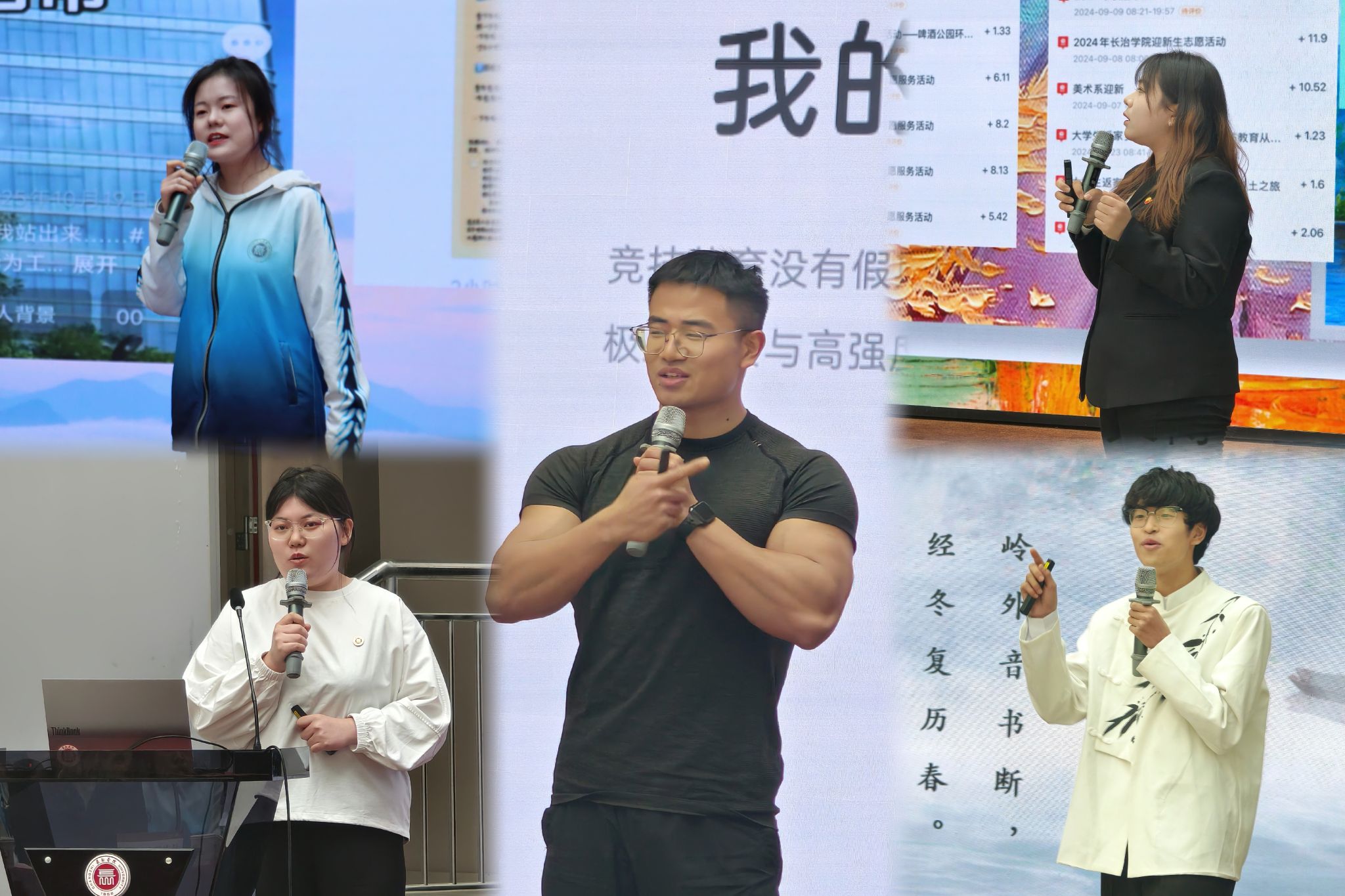 五位分享人用各自真实的寒假经历,为在场学生呈现了一幅“冬藏硕果”的青春画卷。校学生会负责人、英语2301班高榕健同学以《勤工砺志——在劳动实践中遇见未来自己》为题,讲述了从手忙脚乱到独当一面的打工经历,在自食其力中感悟劳动教育的深意;国家励志奖学金获得者、汉语2403班李祁燕同学以《躬身实践——在知行合一中照见古城新生》为题,分享走进古城与游客对诗的有趣故事,用主动迈出舒适区的勇气完成从“被动接受”到“主动探索”的认知跃迁;国际级运动健将、体育2203班杜春晓同学以《蓄力笃行——在砥砺奋斗中书写青春答卷》为题,用三年如一日的极致自律诠释“厚积薄发”的奋斗真谛;国家励志奖学金获得者、美术2301班范馨悦同学以《秉美传薪——在感恩奉献中传递志愿微光》为题,用画笔传递温暖,在志愿服务中完成从“受助”到“助人”的成长跨越;外省学生代表、历史2501班王文博同学以《心归两地——在吾乡心安处寻得此生归途》为题,讲述从孤独迷茫到融入集体的心路历程,在用心感知中找到心灵的归属。他们的故事共同证明:真正的成长,往往发生在无人喝彩的独处时刻,发生在直面困难的咬牙坚持中,发生在心怀感恩的回馈行动里。